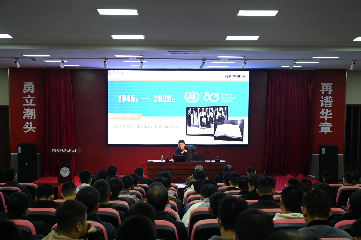 12月18日晚,学校党委副书记、副校长何超以“践行多边主义,完善全球治理”为主题,为定向培养军士讲授了一堂生动的形势与政策课。授课旨在深化大家对当前国际格局的理解,强化使命担当,回应大家对成长发展的现实关切。为让授课内容更加贴近学生思想实际,何超在课前作了充分准备。他专门收集梳理了大家普遍关注的国际热点问题、未来职业发展路径及相关政策动向,通过细致调研准确把握学生思想脉搏,确保了授课的针对性与实效...
